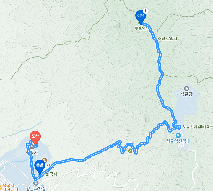 - 코스 경로 : 불국사 매표소 → 토함산 등산로 진입 → 석굴암 전망대 → 석굴암 참배
