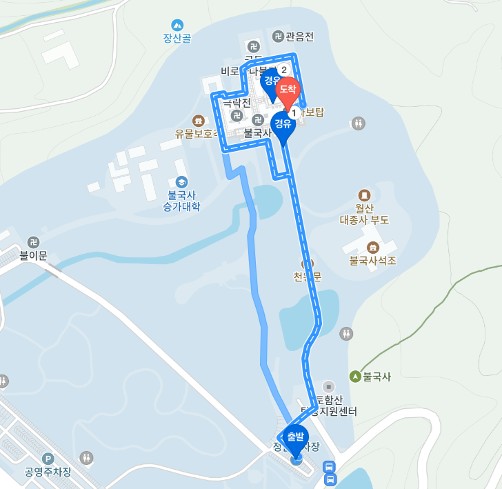 - 서울 출발 → 경부고속도로 또는 중부내륙고속도로 → 경주IC → 경주시 불국로 385 (불국사 주소) 기준 약 3~3.5 시간 소요.